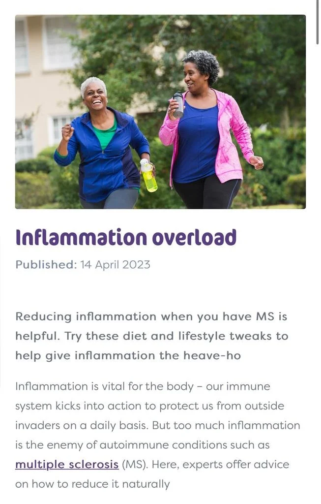 “The starting point of targeting inflammation would be with an anti-inflammatory diet,” says Libby Linford, nutritional therapy practitioner, registered nutritionist and functional medicine practitioner (surreycentrefornutrition.com). “There are varying degrees of restriction when it comes to anti-inflammatory dietary protocols which may be helpful for someone with MS, the most basic of which would be the removal of key inflammatory triggers including sugar, refined carbohydrates, alcohol, processed foods, trans fats and some seed oils.